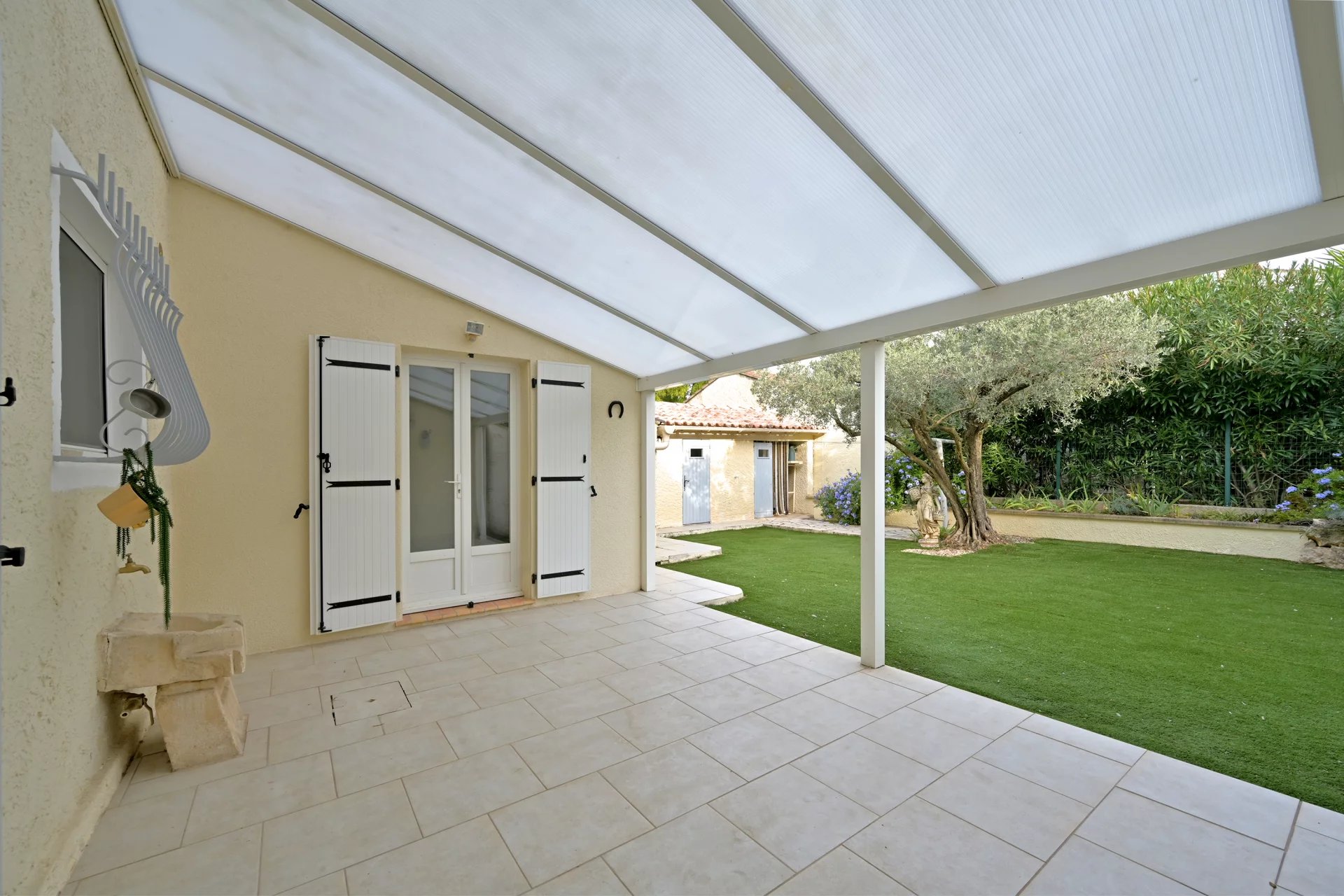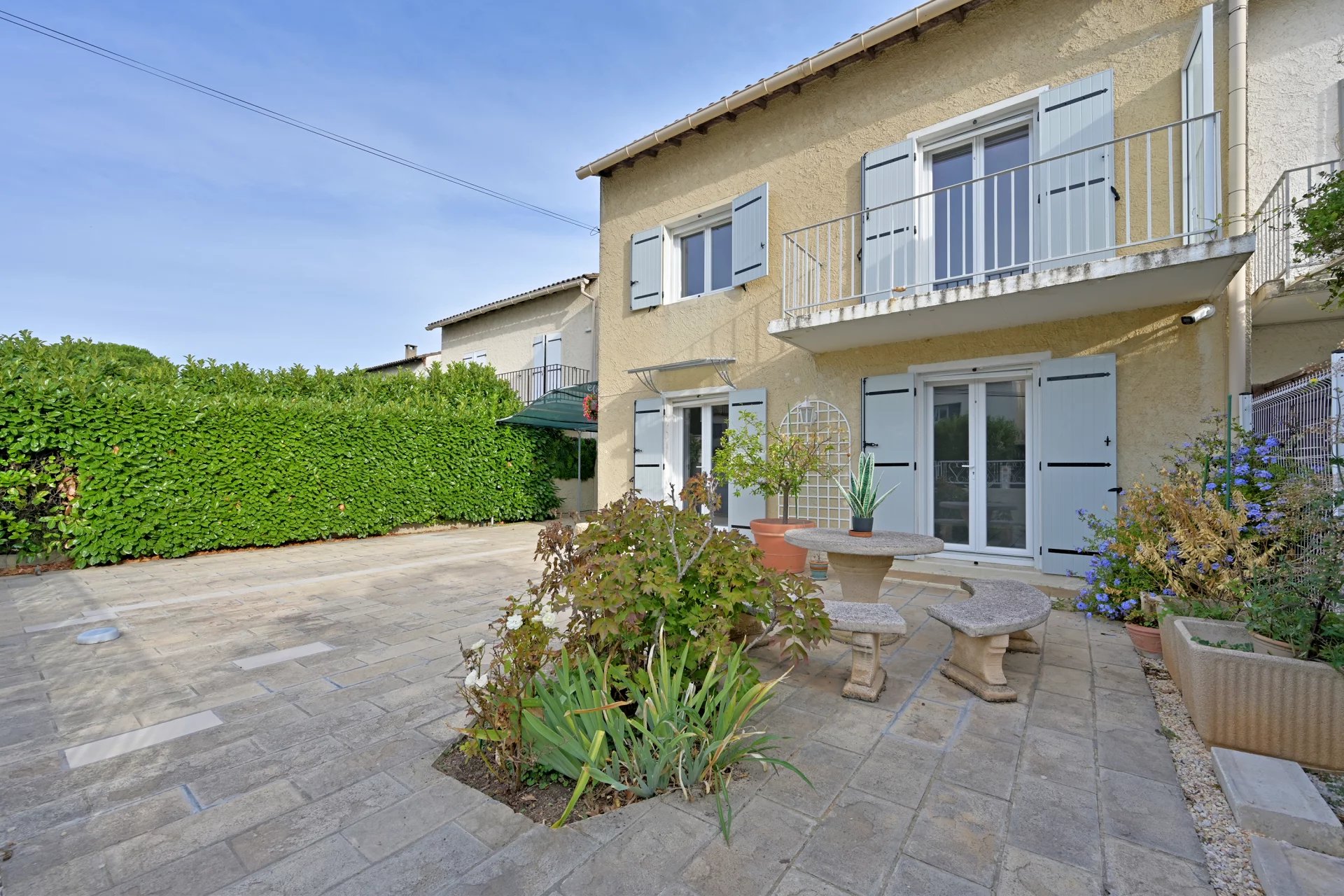 Elle offre deux agréables espaces extérieurs : une cour plein sud idéale pour profiter du soleil et un jardin intimiste et verdoyant avec plusieurs annexes de rangement.